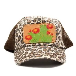 MCINTIRE SADDLERY Leopard Yellow Rose Leather Patch Cap