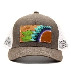 MCINTIRE SADDLERY Blue Sunflower Leather Patch Cap