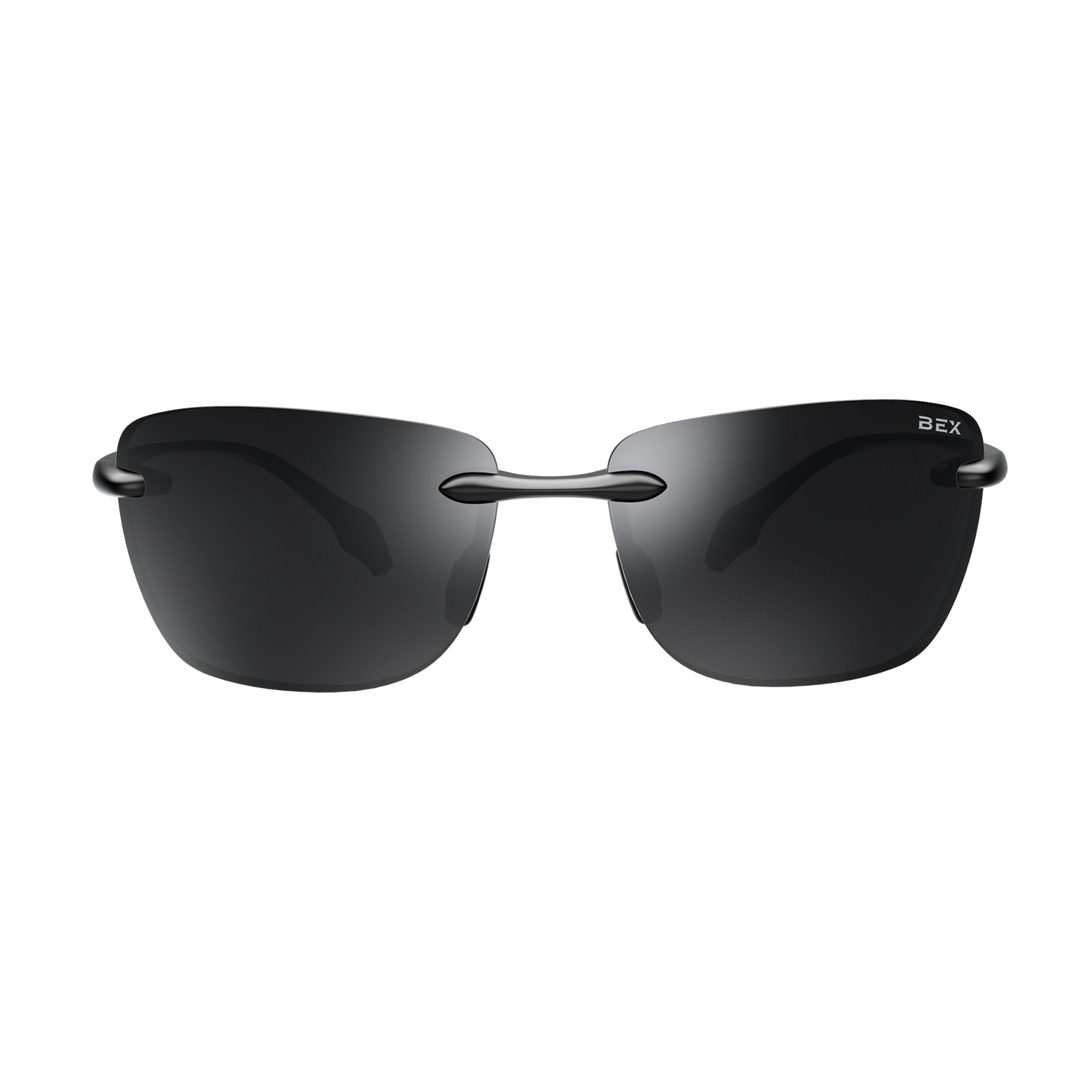 - Black/Gray (S38BGS) – Frameless sunglass with glossy black thermal plastic parts, and nose bridge with soft black nose pads.