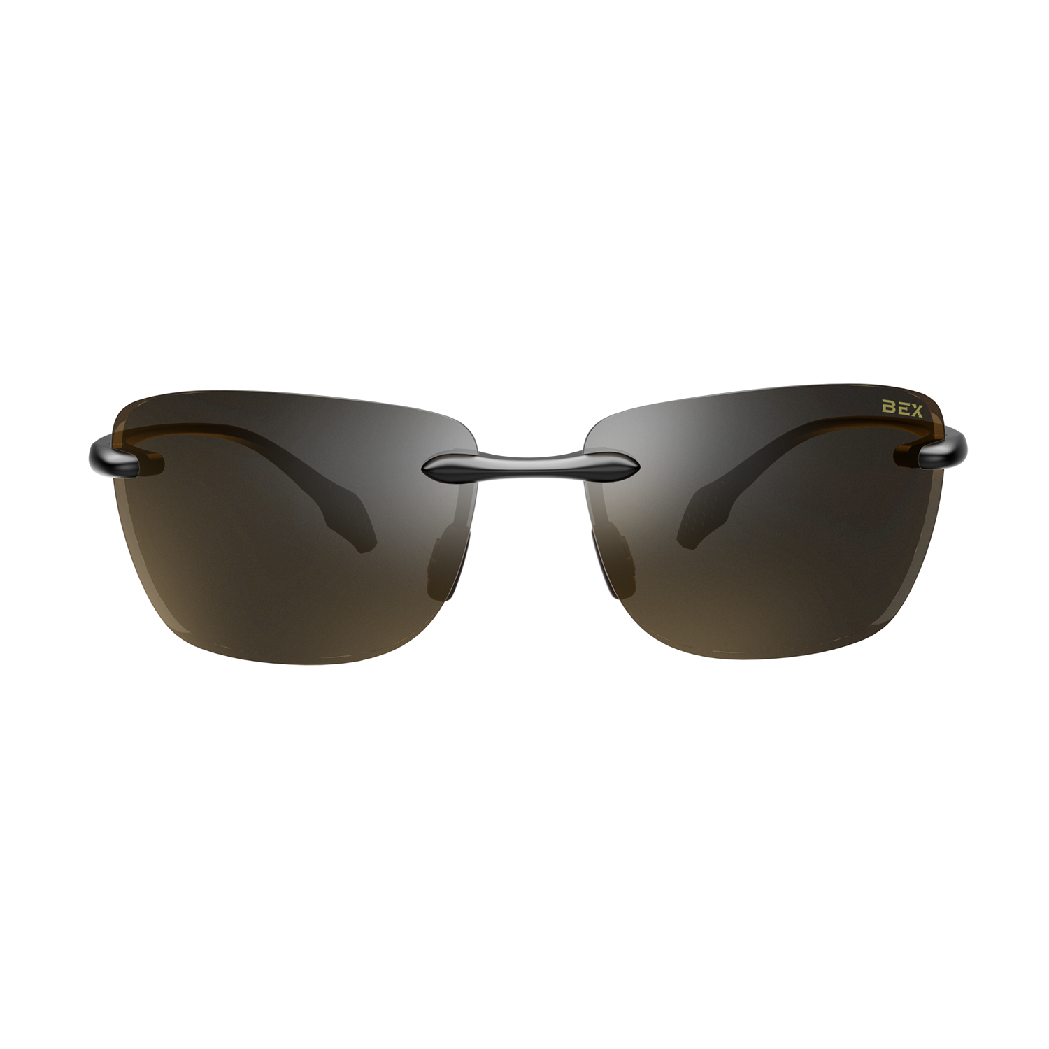 - Black/Brown (S38BBS) – Frameless sunglass with glossy black thermal plastic parts, and nose bridge with soft brown nose pads.
