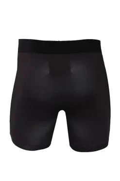 poly-spandex knit 6″ boxer brief, logo waistband, contrast back panel, contrast topstitch