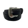 This roughy original men’s belt features brown leather, with black aztec embossed, detailed hand-laced ivory & blue accents.
