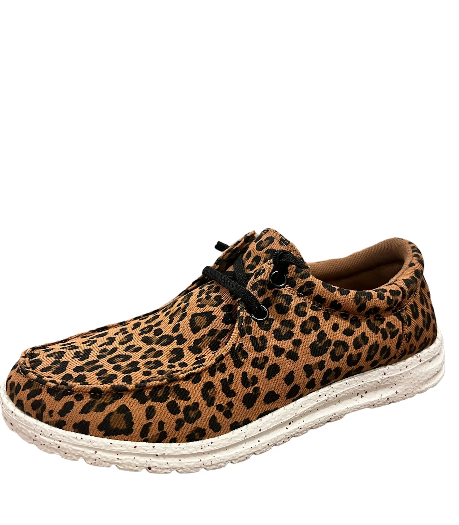 Roper Ladies’ Hang Loose Lace Up Shoe in Cheetah Print.