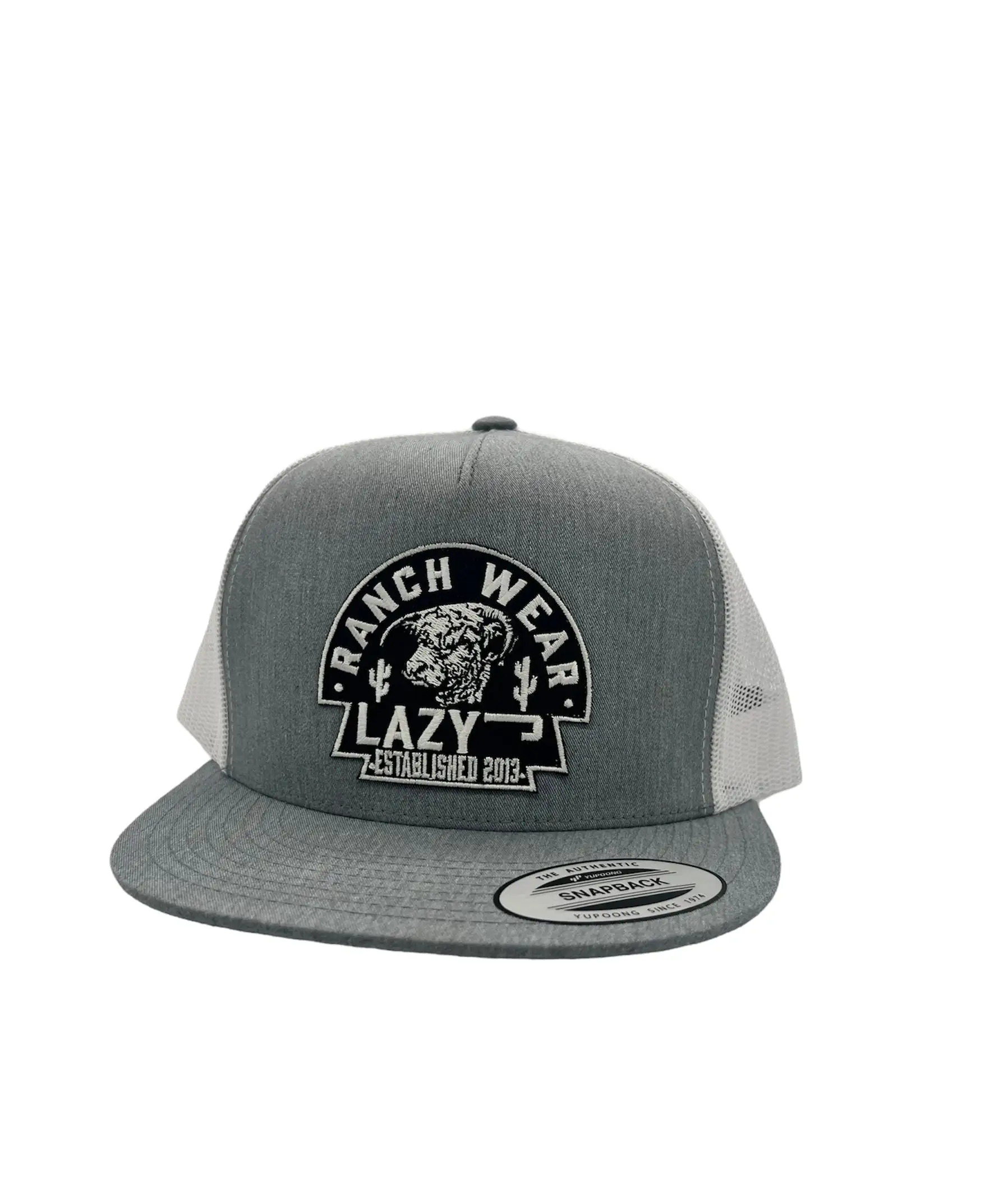 Grey front, white mesh back. 4 inch crown. Black Arrowhead patch. Snapback.