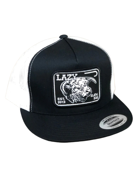 Black front and White mesh back. 4 inch crown. Elevation patch. One size fits most.