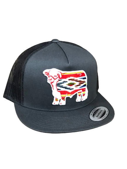 Gray front and Grey mesh back. 4 inches. Serape Bull patch. One size fits most.