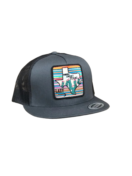 Lazy J Ranch Wear Grey front & Grey mesh back. 4″ Home Sweet Texas patch. One size fits most.