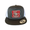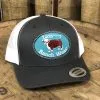 Red front, Black mesh back. 4 inch crown. Black and Red Diamond Hereford patch.