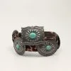 - Two-tone vegetable leather belt with high-low texture in the embossed detailing and colors finished one by one
