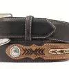 3D boys belt by M&F Western Products features a dark brown center with raised center bump and tan tabs. Antique silver roller buckle. Available sizes 20- 30.