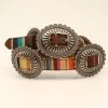 Women’s Angel Ranch Tan Floral Belt with Silver Buckle. Brown genuine leather belt with embossed floral print. Single-row contrast stitching. Removable antique silver tone buckle with turquoise colored marble accent stone and turquoise colored stones on keeper. Measures: 1 1/2″ wide.