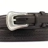 3D boys belt by M&F Western Products is genuine leather with floral tooling on the strap. The rectangle buckle has a cowboy prayer motif and floral detailing. Available sizes 20- 30.