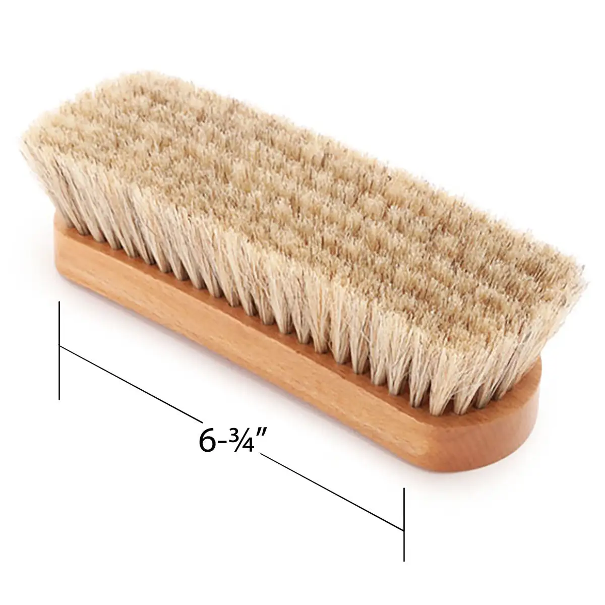 Get a great shine with high quality horsehair bristles that are set in a solid wooden handle. Brushes can reach into places that a cloth cannot. With a few easy strokes and some boot cream, your boots will look like a million bucks. Gray bristles.