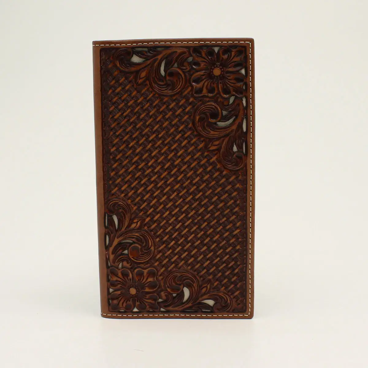 Keep your money organized with this Nocona rodeo wallet by M&F Western Products. The wallet has a basket weave and floral tooling on the outside. Inside features compartments for your credit cards, cash, and an ID window.