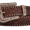 Enjoy comfort and durability from this Mens Nocona belt. This leather and beaded belt looks great for times you need to be dressed up or casual wear. There is a basket weave stamp on the tabs of the belt. This classic belt is a style that can be worn for years. Interchangeable silver buckle.