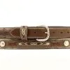 Enjoy comfort and durability from this Mens Nocona belt. Two tone leather with 2 silver diamond shaped conchos. Silver buckle.