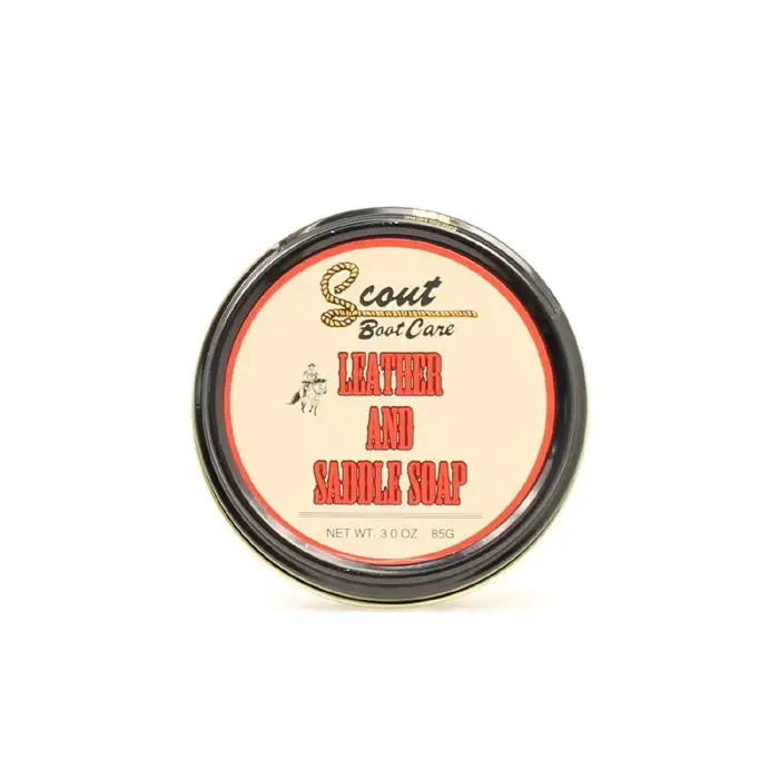 Scout Leather and Saddle Soap by M&F Western Products is a favorite for boots, fine saddlery, shoes and other smooth leather materials. It cleans the leather and moistens the fibers to prevent brittleness while keeping the materials strength and supple feel.