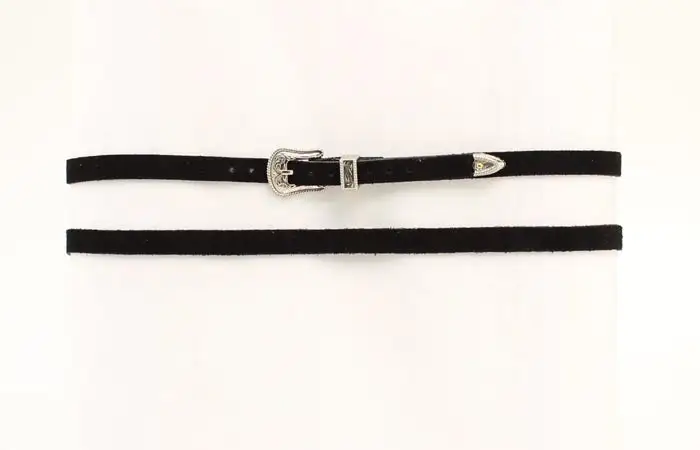 Create your own personalized hat style with this leather hatband by M&F Western Products®. This hatband features a black suede strap. This style hatband uses a belt style adjustment with a silver buckle. Perfect for going out on the town.
