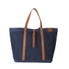 Woven fabric exterior with full grain leather trim