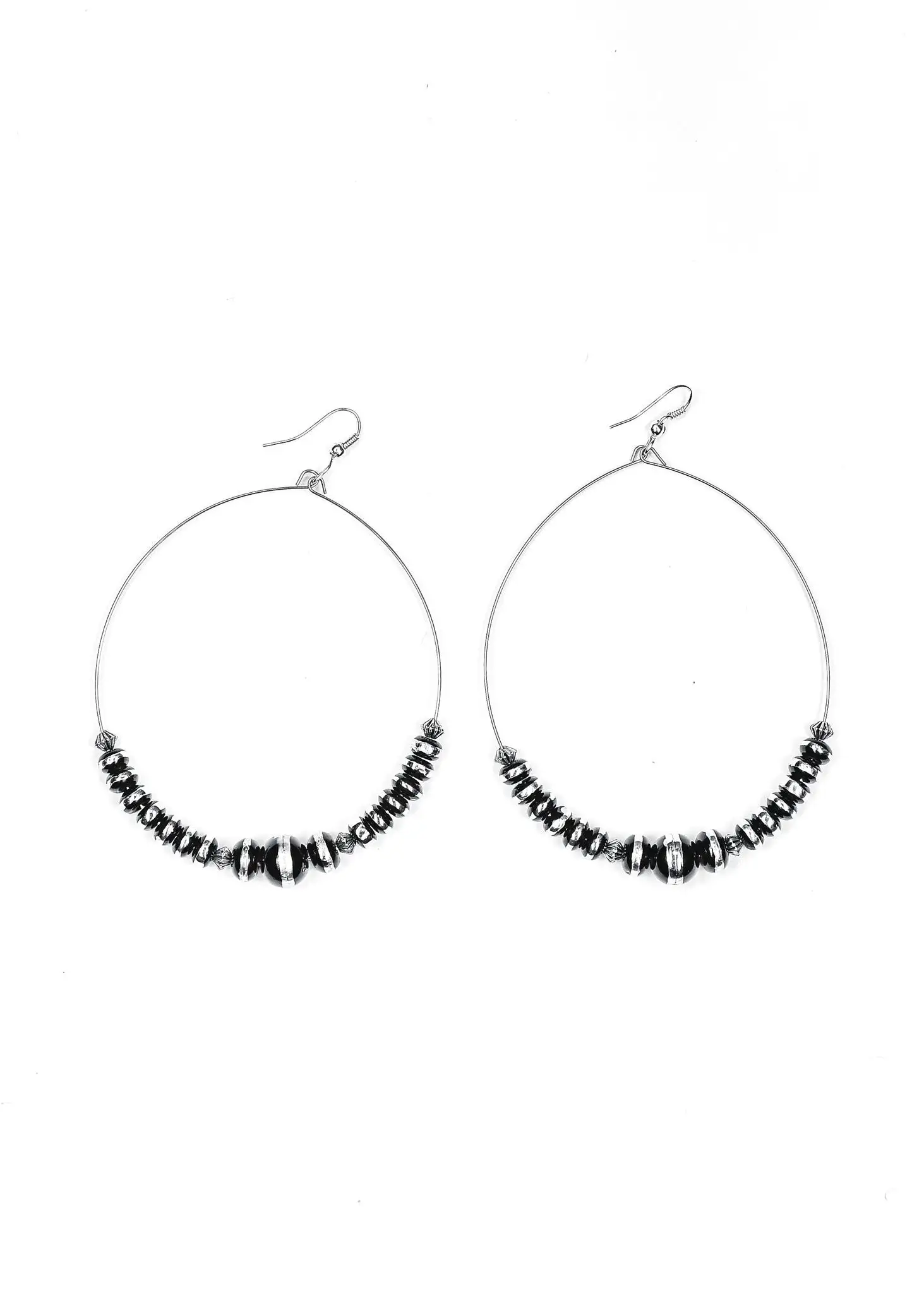 3.5″ Black and Silver Rondell Beaded Wire Dangle Hoop
