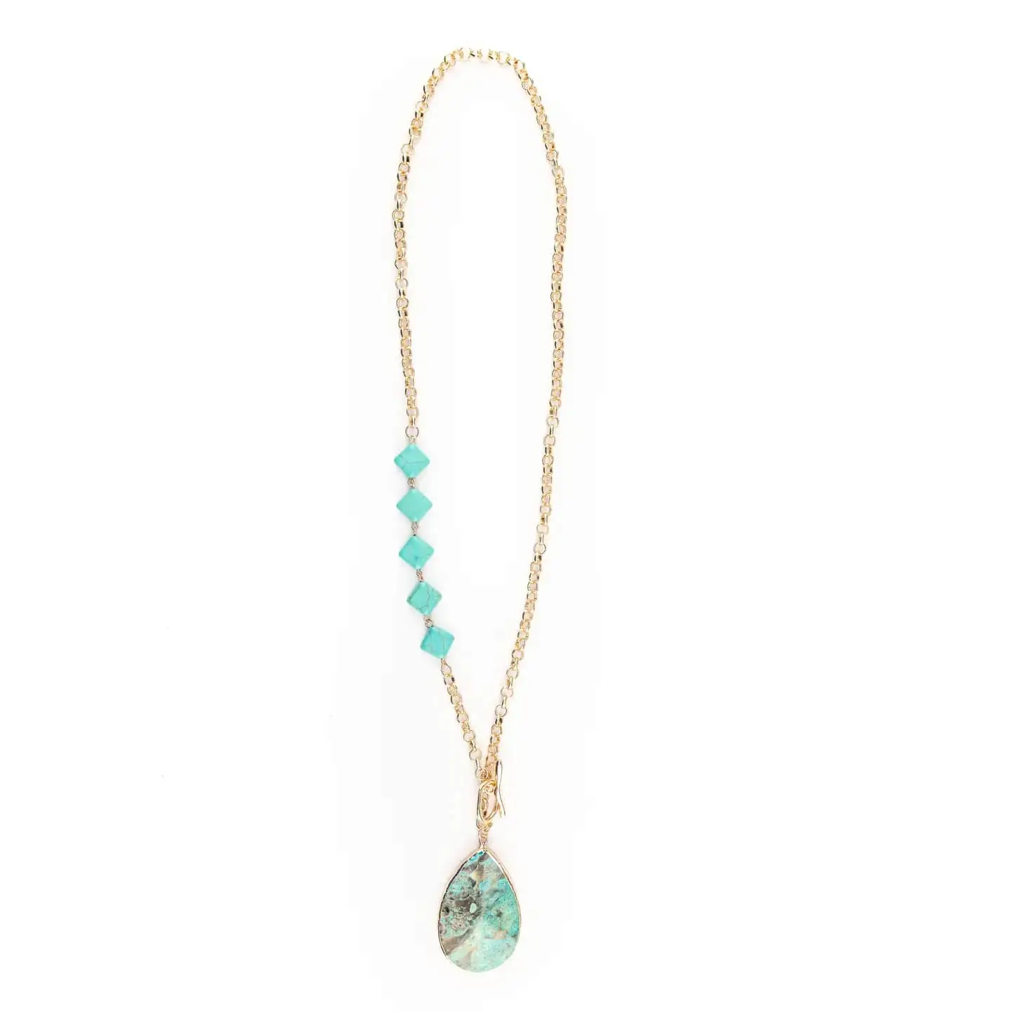 28″ Gold Chain Necklace with Turquoise Stone Pendant.